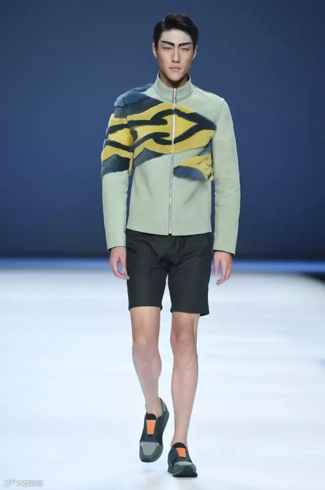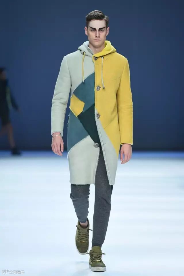 再来感受下男装的气质:单一且游移!朴素户外自然到静谧室内气息是其想要渲染的情绪,色调以高级灰,森林和自然系为主,加以结构重复与几何拼接,面料上的表达多以自然淳朴的哑光磨面皮和皮毛一体为主,部分水貂撞色拼接。充分的表达了静谧中的高雅、无声中的语言表达。