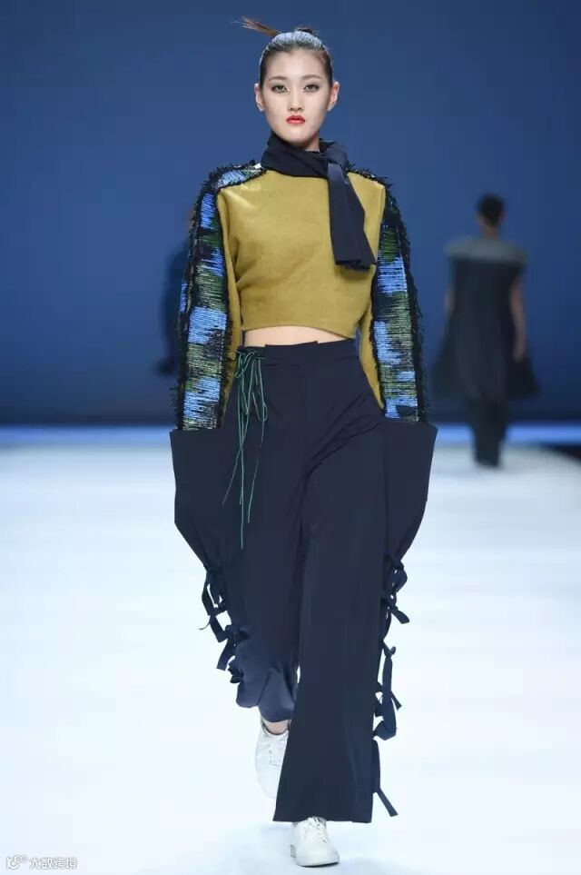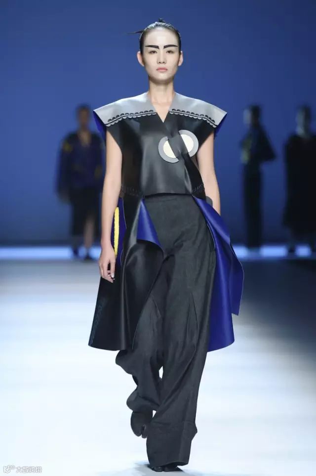 欧式复古歌剧女装与东方武士道精神相结合,通过量感廓形重新诠释新式剧装,盔甲式武士防护感的设计,强调现代实用功能性,搭配褶皱褶裥与绑带设计的大阔腿裤或长裙,别具一格的东方暗黑休闲女装风格。在工艺结构方面以实验性的插片结构连接方式,为穿衣者提供再创作的空间,更具东方设计哲学理念。