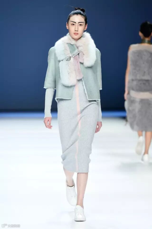 静谧空灵,神秘多变,摩登时尚又不失保暖防御是此主题女装的调性。人的内心渴望被保护的情感被勾勒的更加明显,极简理性地解构分割线设计,提倡简约实用主义的设计理念,整体服装色彩以粉绿、浅粉为主,夹杂着朴素冷淡、明净中性的气质。走秀服装多为皮毛一体、大毛领披肩设计,款式上以大廓形、体量感秋冬外套为主。