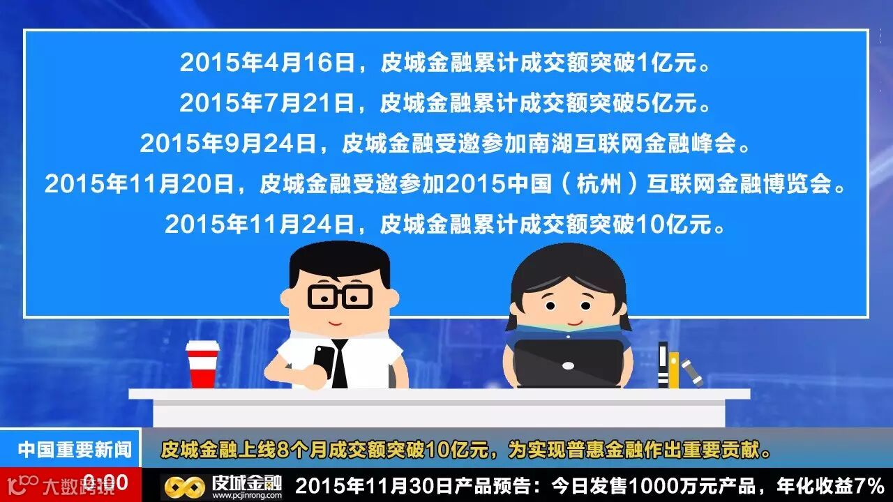 2015年11月24日,皮城金融累计成交额突破10亿元。