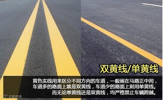 黄色实线用来区分不同方向的车道,一般画在马路正中间,车道多的路面上就是双黄线,车道少的路面上则用单黄线。而无论单黄线还是双黄线,均严格禁止车辆跨越,因此压线行驶、超车或者掉头等都是不允许的。