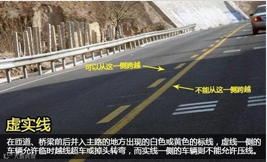 通常道路上的标线都以白色居多,其中白色虚线是分隔同向行驶的车道,可以进行越线变道等操作;白色实线则不允许越线行驶。