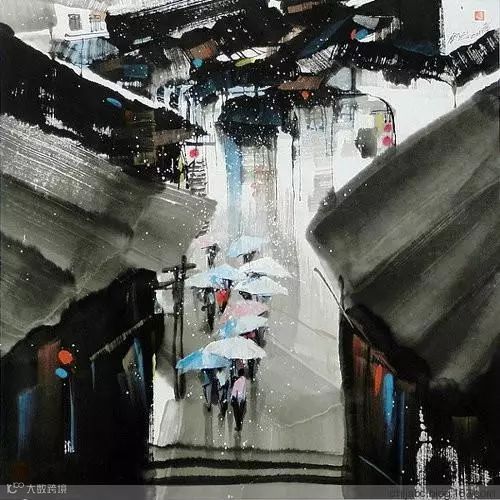 人来人往的街道中,是谁的雨伞甩出了朵朵莲花?