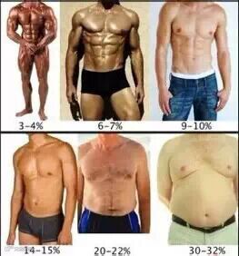 体脂图,哥们我的身材当时就冲着这个20-22%的造型去了,还是没肌肉的那种。再这么下去就是30%。(我想我没病,很肥的时候不会玩自拍的...我拍的下去麽我...不然真是可以给你们看看)咳咳再强调一次,这不是如何健答..只是一个综合过程..
