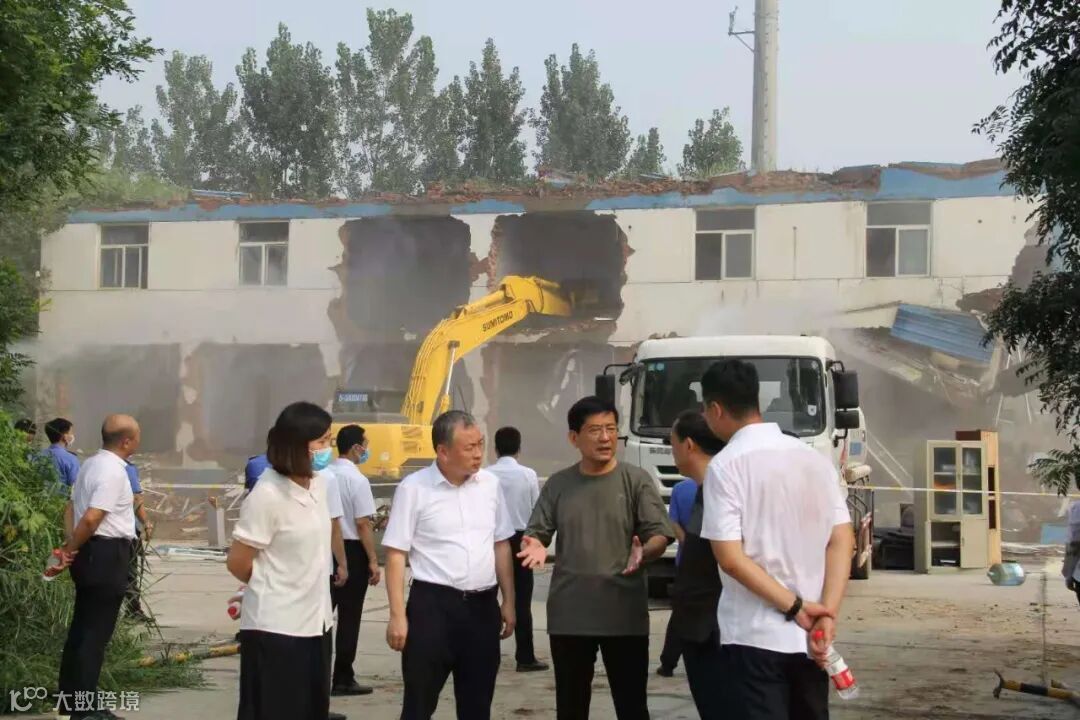在区领导金珂锐的现场督导下,宋营镇对二号山周围违章建筑金隅旭成混凝土有限公司高新区分公司及一处沿街库房进行拆除。