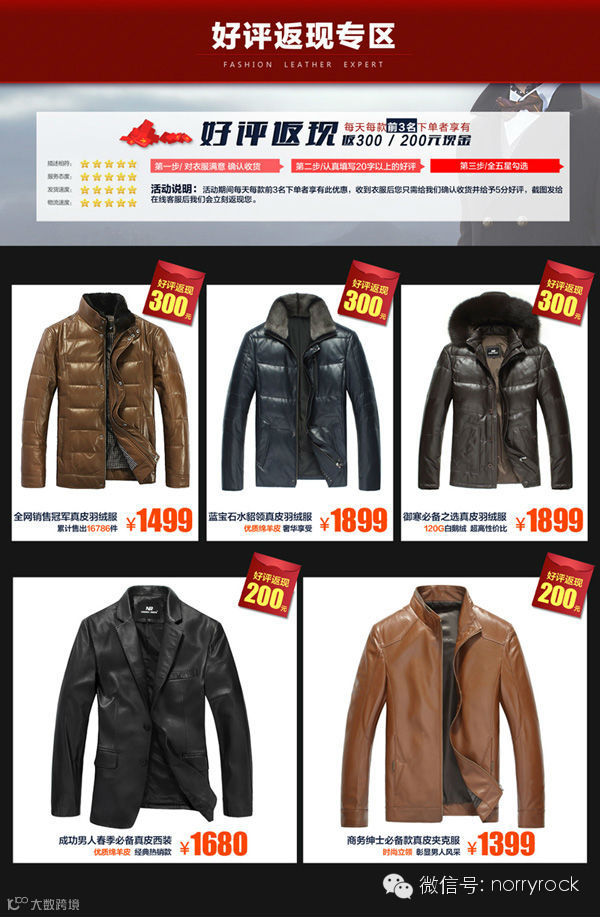 Norryrock天猫皮衣旗舰店返现200或者300元的现金红包数量有限!名额有限!