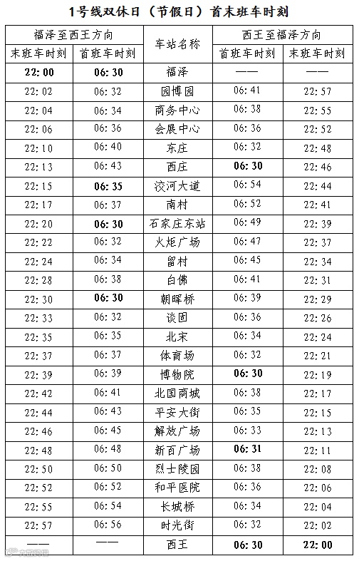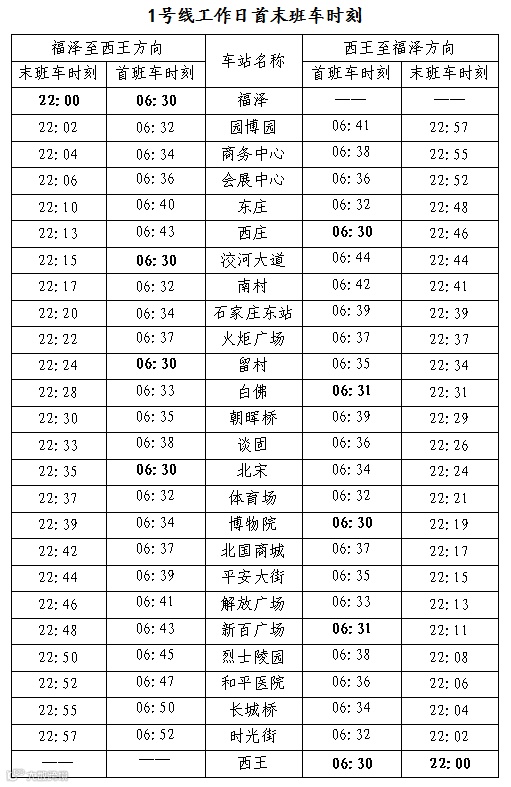 自4月26日起1号线各车站首末班车时间