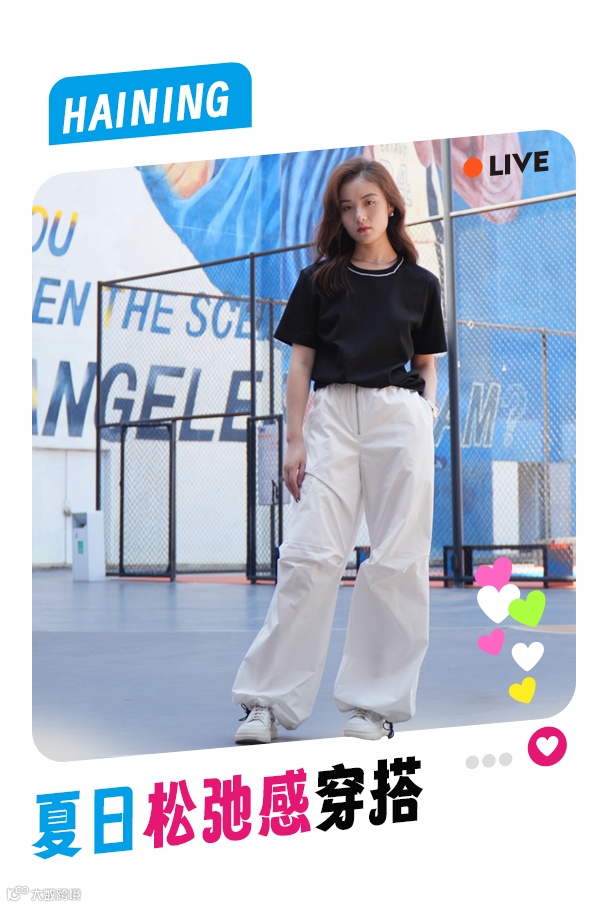 黑T与白色阔腿长裤