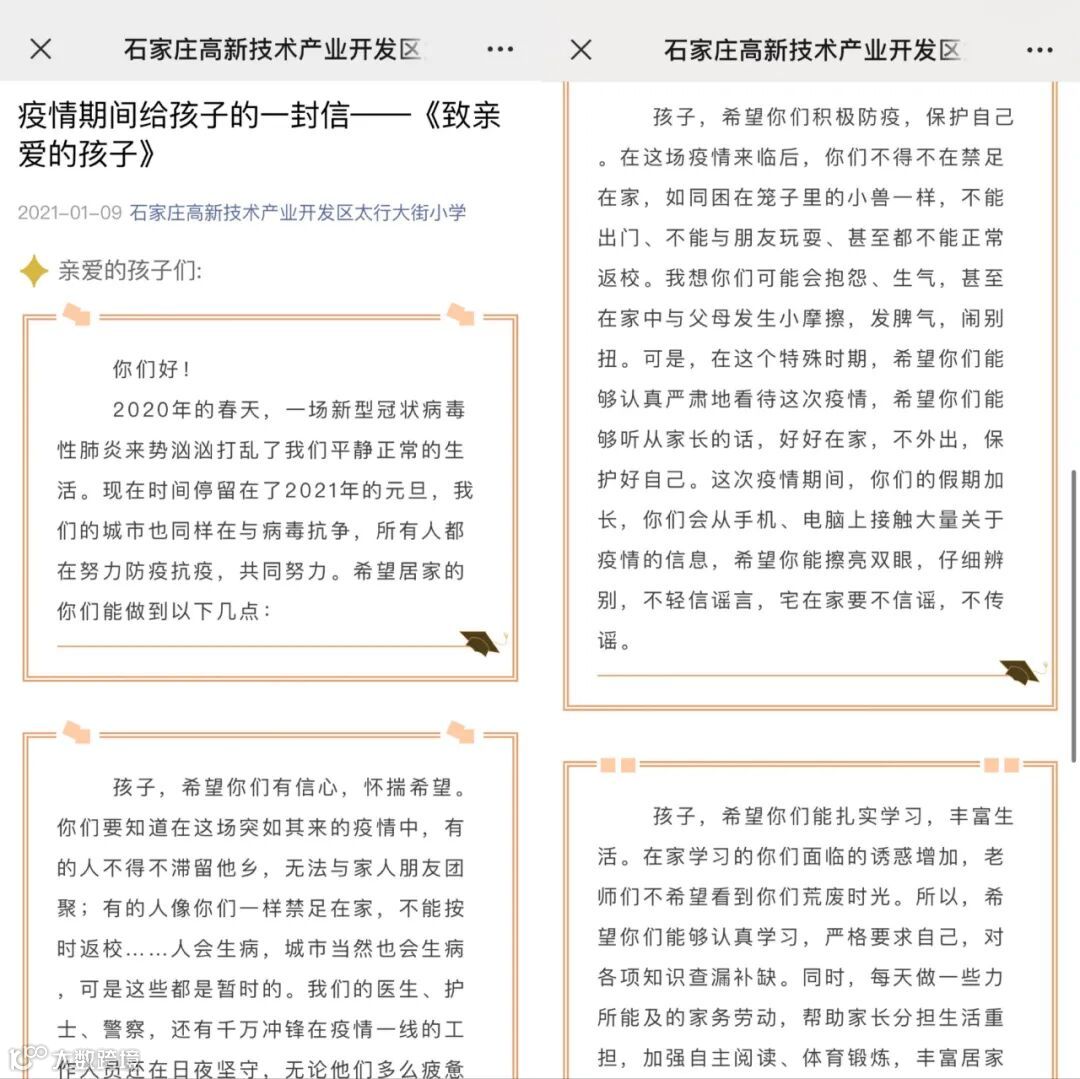 太行大街小学分享了《致亲爱的孩子》—给孩子的一封信,以亲切真挚的话语鼓励孩子们在居家学习期间要有信心、有希望,共同抗击疫情,迎来光明。