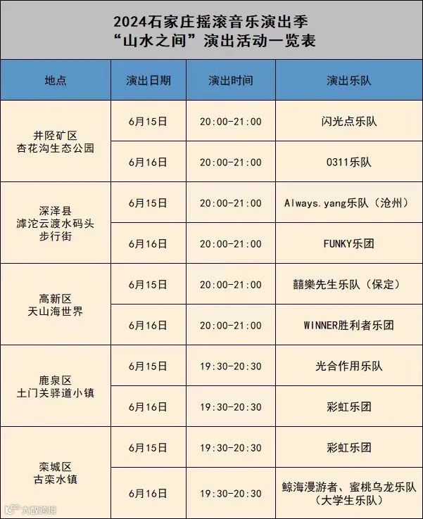 导读:石家庄摇滚音乐演出季,“激情夏夜”“周末草坪”“山水之间”最新安排来了