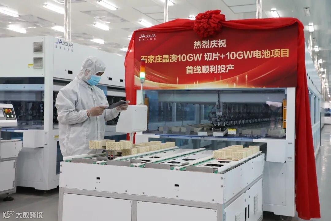 晶澳太阳能科技有限公司的年产10GW切片及10GW电池项目首条生产线顺利投产,体现了“石家庄