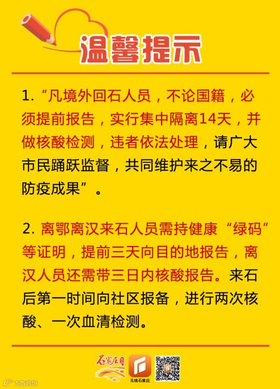 导读:境外及离鄂离汉返石人员须知
