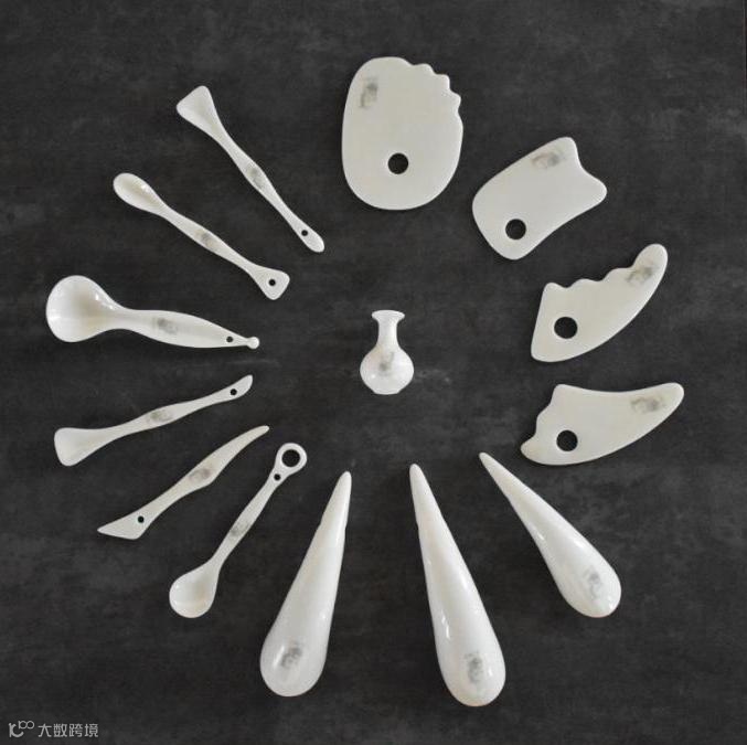 中医陶瓷刮痧系列,曾获得2019·河北省文创和旅游商品创意设计大赛最佳创意设计奖。