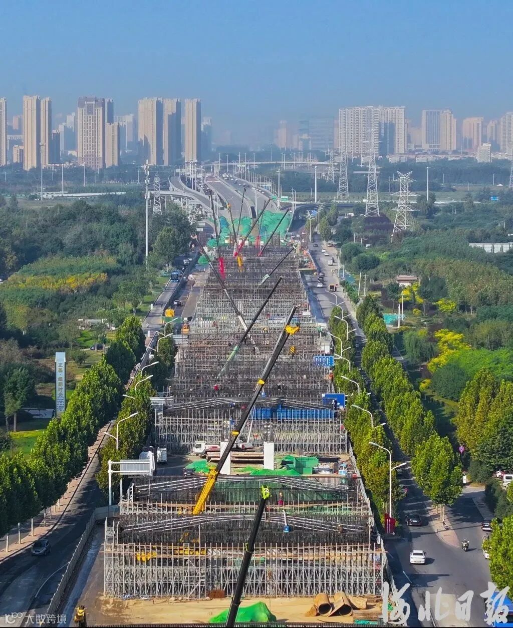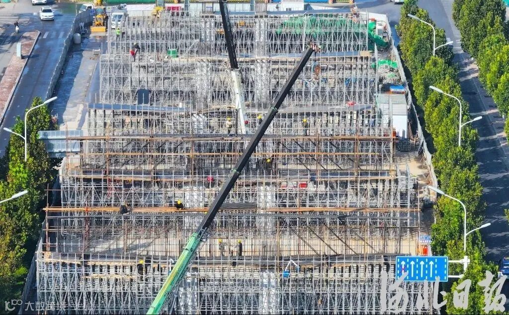 10月7日,石家庄市南二环(仙台街至太行大街)快速连通工程加紧施工。
