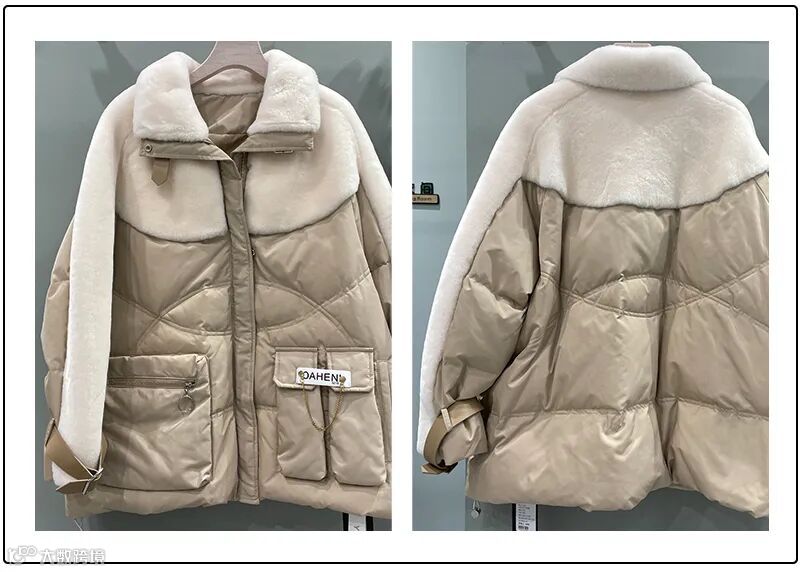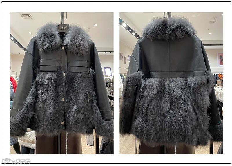 拼接皮毛一体,中长款设计更显瘦,整体皮质给人一种酷酷的飒爽感~