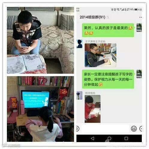 第二小学、北郄马小学的线上授课让老师们热情高涨,他们在微信群里答疑解惑,与孩子们亲切互动。