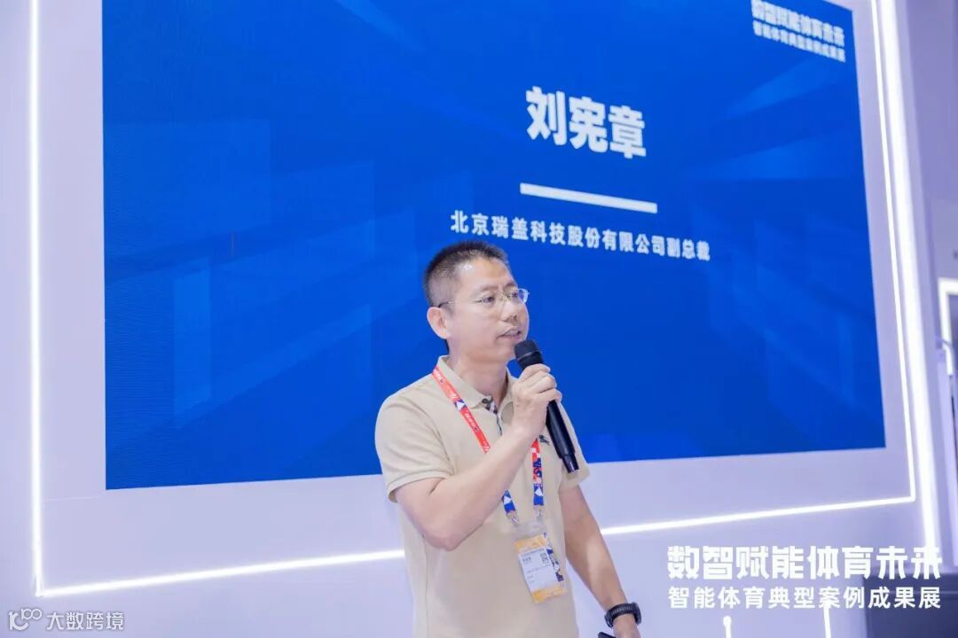北京瑞盖科技股份有限公司副总裁刘宪章作为企业代表发言,分享了企业在智能体育领域的探索与成果。