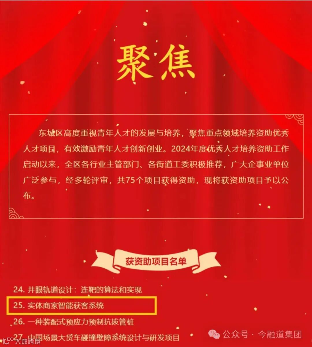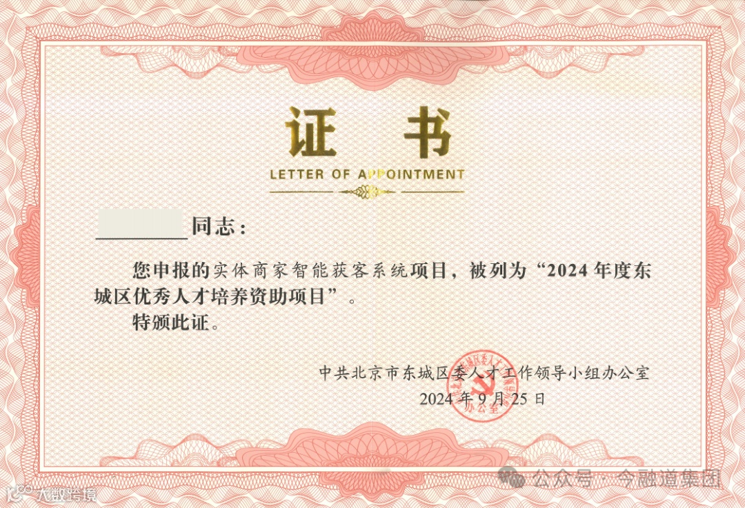 近日,北京市东城区2024年度优秀人才培养资助项目正式公布,今小店项目凭借其在全链路智能营销领域多年的自主创新及强大的技术研发实力,成功脱颖而出,再次获得专项培养资助。