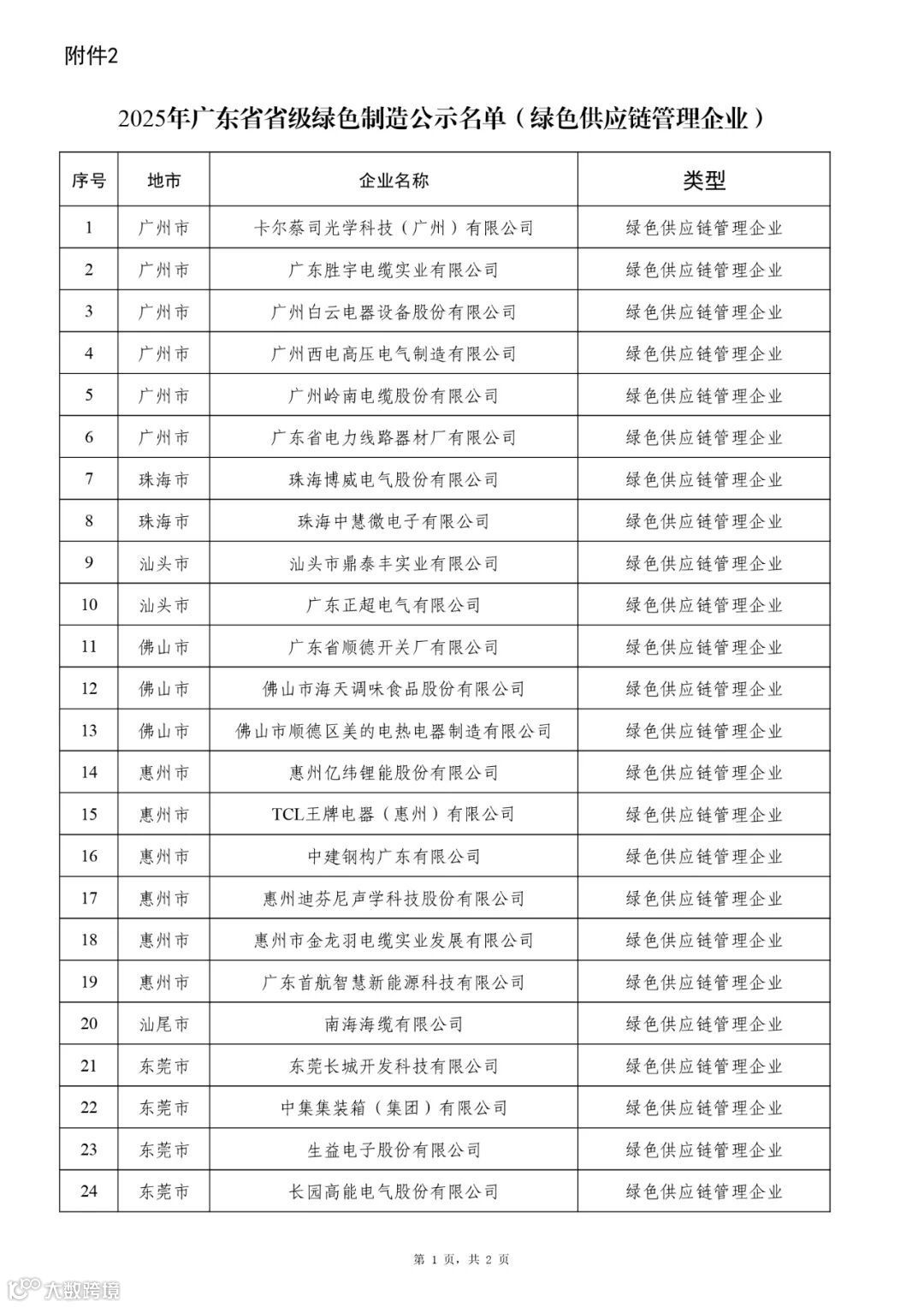 广东省工业和信息化厅关于2025年度广东省绿色制造名单的公示