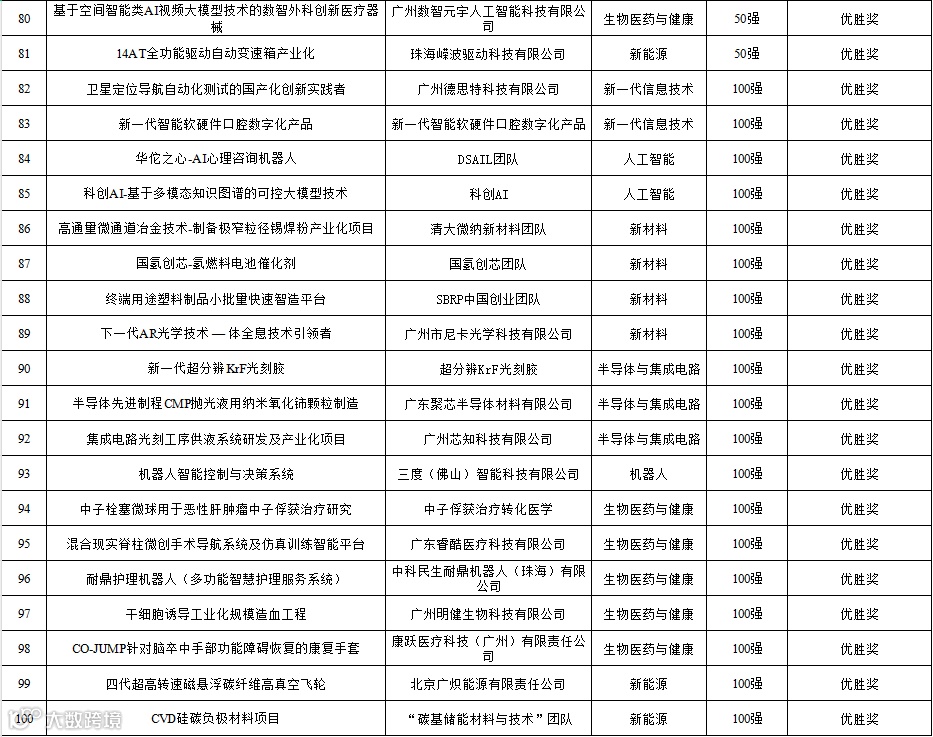 创客广东大赛组委会关于第十届“创客中国”广东省中小企业创新创业大赛暨第九届“创客广东”大赛获奖名单的公示