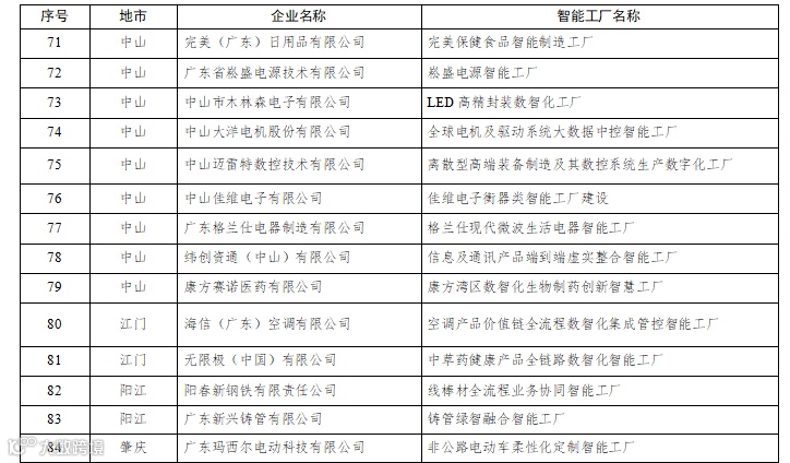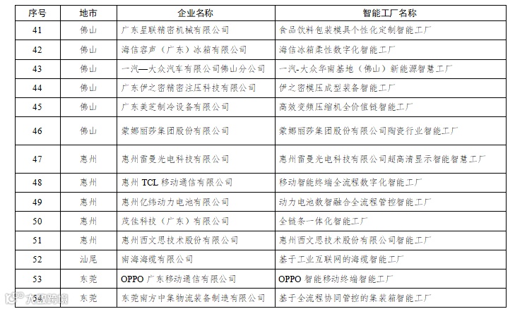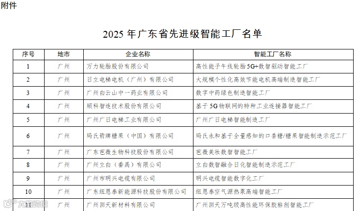 广东省工业和信息化厅 广东省发展和改革委员会 广东省财政厅 广东省市场监督管理局关于公布2025年广东省先进级智能工厂名单的通知