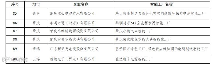 根据《工业和信息化部办公厅 国家发展改革委办公厅 财政部办公厅 国务院国资委办公厅 市场监管总局办公厅 国家数据局综合司关于开展2025年度智能工厂梯度培育行动的通知》(工信厅联通装函〔2025〕251号)要求,经企业申报、地市推荐、专家评审、网上公示等程序,遴选了万力轮胎股份有限公司等90家单位的智能工厂纳入2025年广东省先进级智能工厂名单,现予以公布。请各地市有关部门加强指导和推广,鼓励给予相应政策支持。
