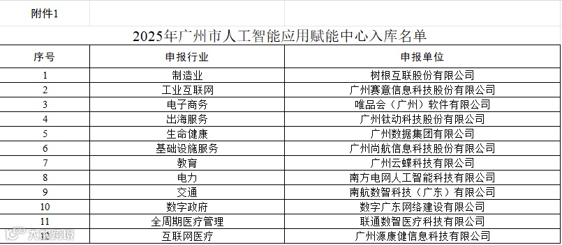 1.2025年广州市人工智能应用赋能中心入库名单