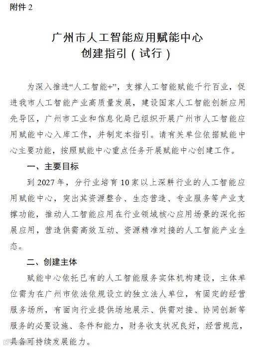2.广州市人工智能应用赋能中心创建指引(试行)