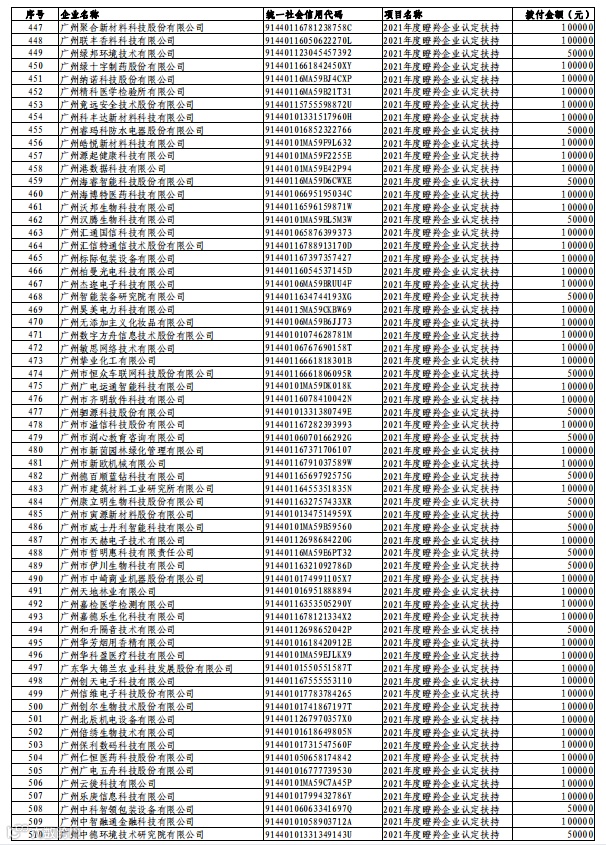 根据《广州市黄埔区 广州开发区促进高成长科技企业发展实施办法》(穗埔科规字〔2021〕5号)、《关于认定广州市黄埔区 广州开发区2021年度瞪羚企业和瞪羚培育企业的通知》(穗埔科〔2022〕136号)相关规定,