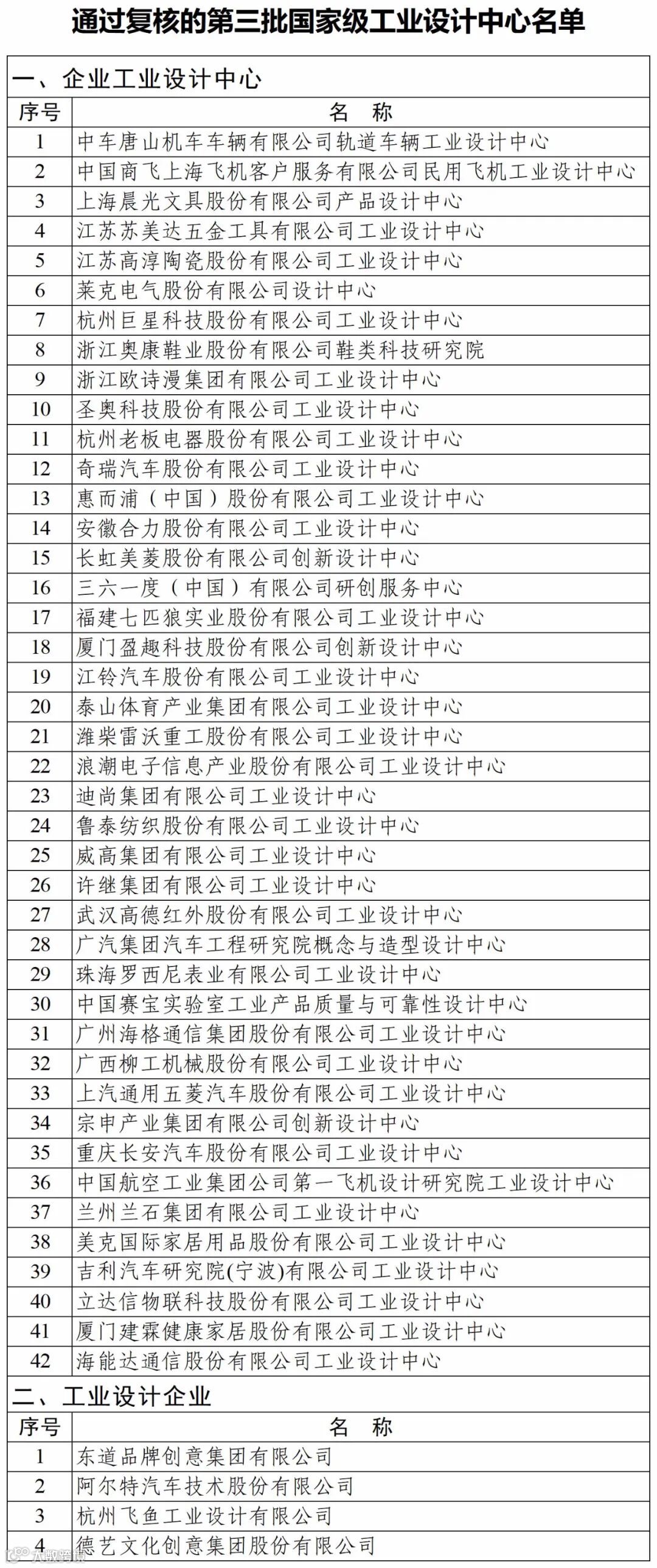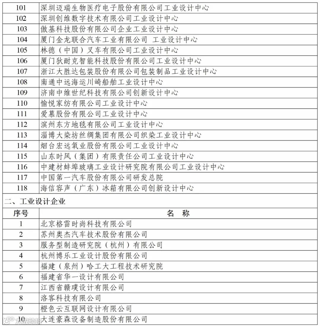 以下为完整工业设计中心名单,点击放大图片查看