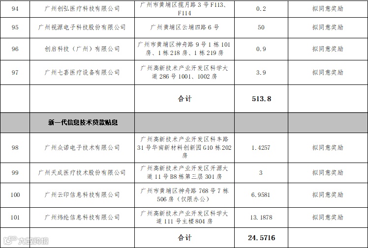 根据我区有关金融扶持政策规定,现对广州得尔塔影像技术有限公司等97家企业民营及中小企业银行贷款利息补贴、广州众诺电子技术有限公司等4家企业新一代信息技术贷款贴息、广东中设智控科技股份有限公司等2家企业区块链贷款贴息、广州市万绿达集团有限公司等17家企业绿色贷款贴息项目进行公示,公示内容见附表。