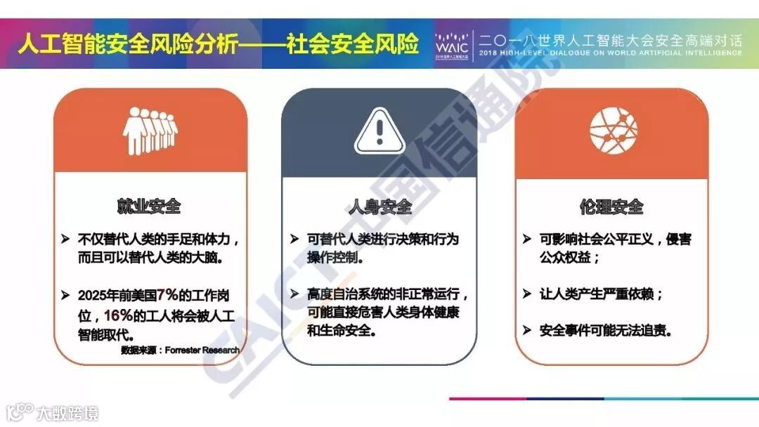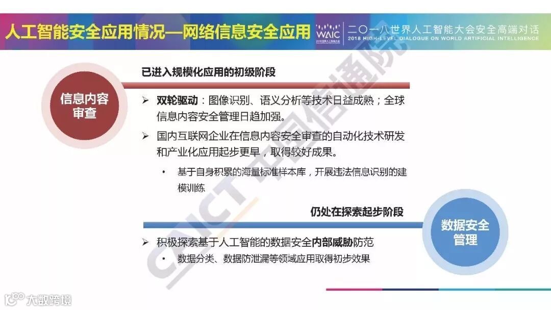 2018年9月18日,在2018年世界人工智能大会“人工智能安全:挑战与机遇”高端对话中,中国信息通信研究院(以下简称 “中国信通院”)发布了《人工智能安全白皮书(2018年)》。中国信通院安全研究所信息安全研究部高级工程师牛金行对白皮书进行了解读。