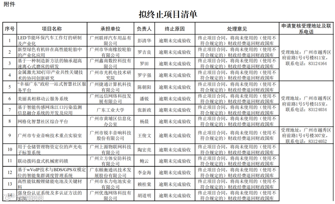 广州市科学技术局关于2021年第二批逾期未验收27个项目拟终止公示