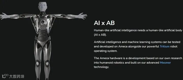简单来说是为机器人配备一个更精细,更智能的身体(Artificial Body,即AI×AB),主要依靠两大核心技术实现:一个是机器人操作系统Tritium,另一个是Mesmer技术。