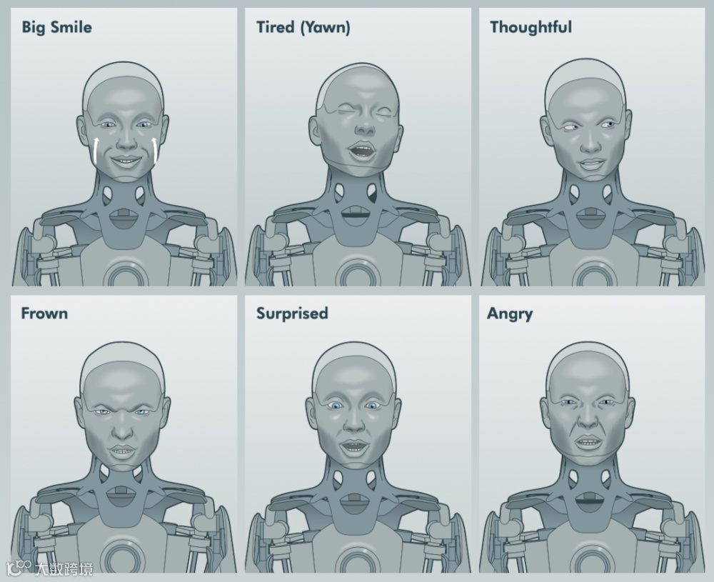 有了这几方面的共同作用,无论是比较简单的基础表情,还是复杂度较高的喜怒哀乐,Ameca都可以呈现出来。