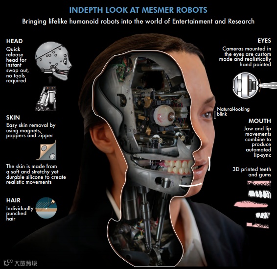 如果说Tritium系统是Ameca的神经驱动,那Mesmer就是注入灵魂了。Mesmer是一个用于建造仿真人形机器人的系统。