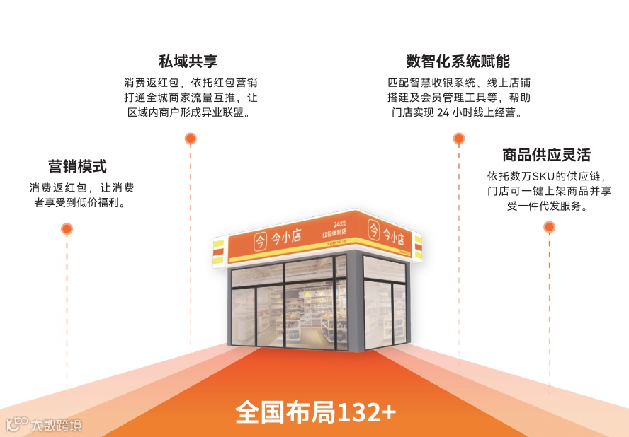 数字化基地联合合作品牌与供应链打通上下游:今小店供应链建成含35大品类、90级子品类、超30000件商品的供应池,既强化自身便利店商品力,也成为实体中小商家的中央采购基地。