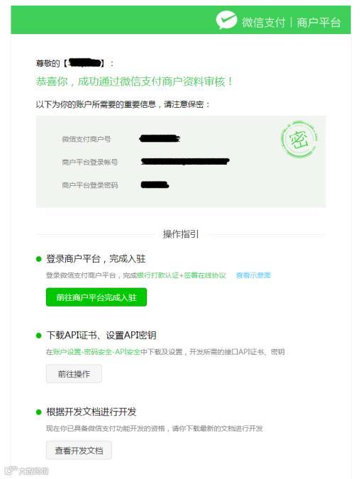 2)再由【动网】运营部提交给腾讯审核,腾讯审核通过后合作商户收到微信支付发送的短信及邮件; |