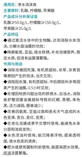 海南客户张老板,11月3日,发来图片反应有一口塘全塘泡沫,老绿水4.6亩水体,花虾养殖120天,100条左右,客户非常着急,寻求解决方案,正洋笪经理建议客户使用净水消沫爽1瓶/1亩,当天发货,4号收到货立即使用,当天见效,明显减少70%泡沫,客户很满意,第二天调水后,无需再次使用,恢复正常水色。11月9日,又发现两塘,杂质多、棕红色水,同方案使用,效果更好,一次100%消除泡沫。