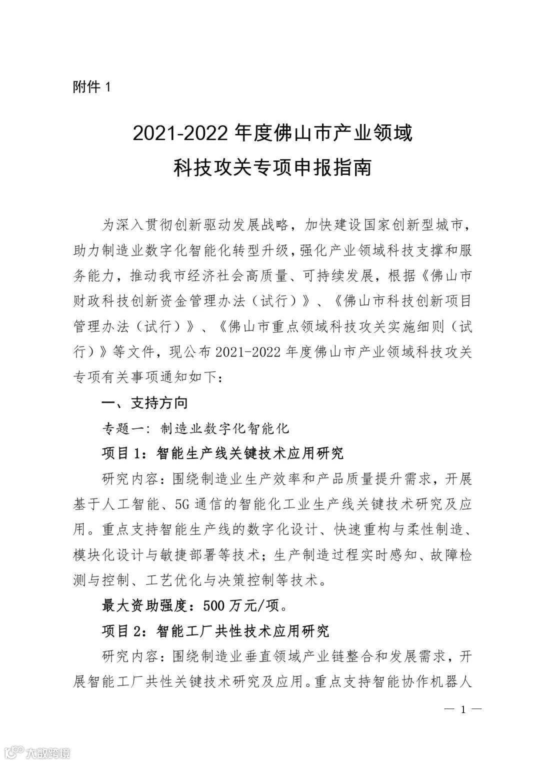 1.2021-2022年度佛山市产业领域科技攻关专项申报指南