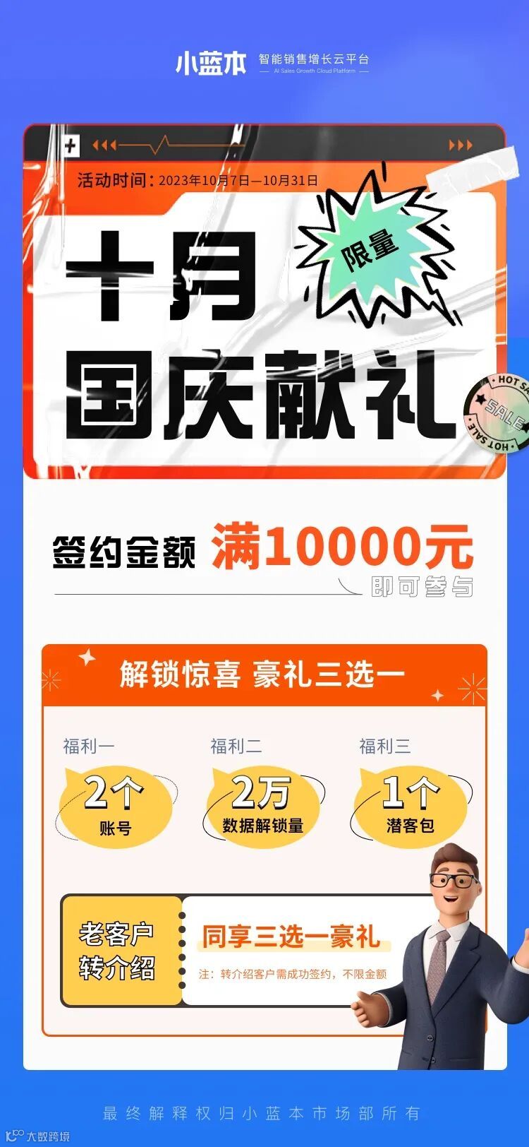 小蓝本通过大数据和人工智能技术为To B企业提供从潜客挖掘、商机触达到客户转化及管理,一站式全流程的智能销售解决方案,助力企业全面提升销售效率和销售业绩,致力于帮助3000万To B销售提升销售效能。