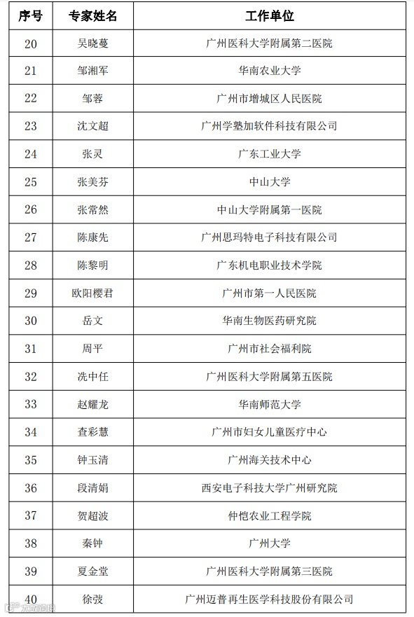 2022年度广州市重点领域研发计划部分专项项目网络评审专家名单公开