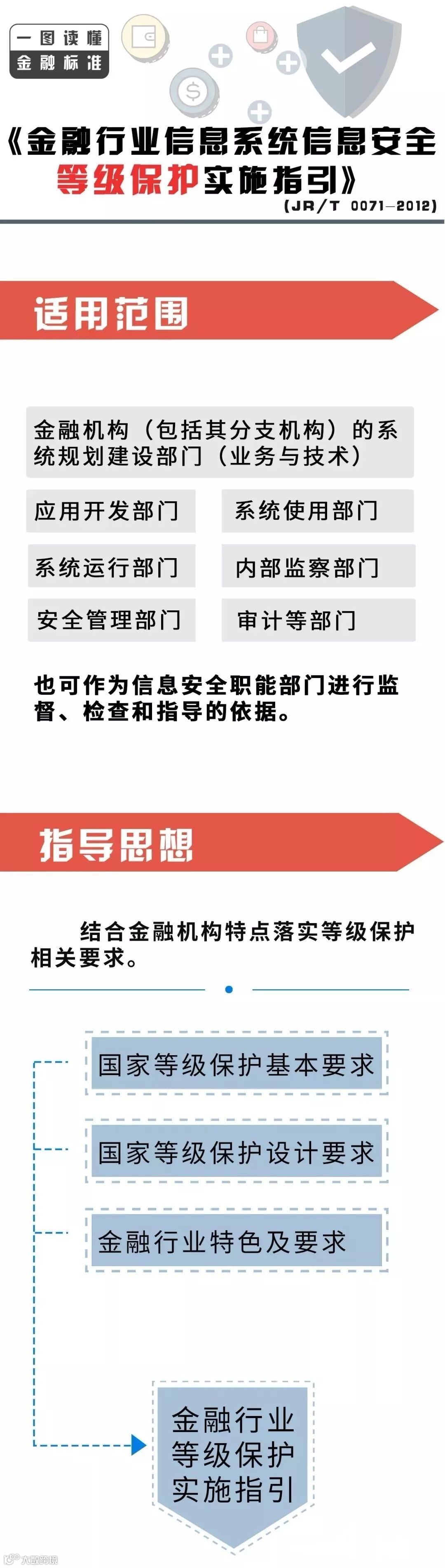 今天小编给大家带来的是中国人民银行营业管理部推出的“一图读懂 金融标准”系列,为大家解读《金融行业信息系统信息安全等级保护实施指引》(JR/T 0071-2012)