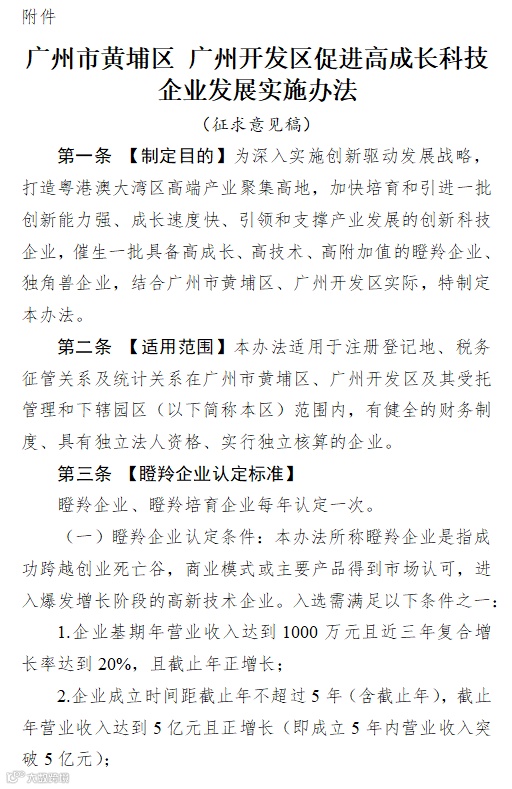 广州市黄埔区科学技术局关于《广州市黄埔区 广州开发区促进高成长科技企业发展实施办法(征求意见稿)》公开征求意见的通知