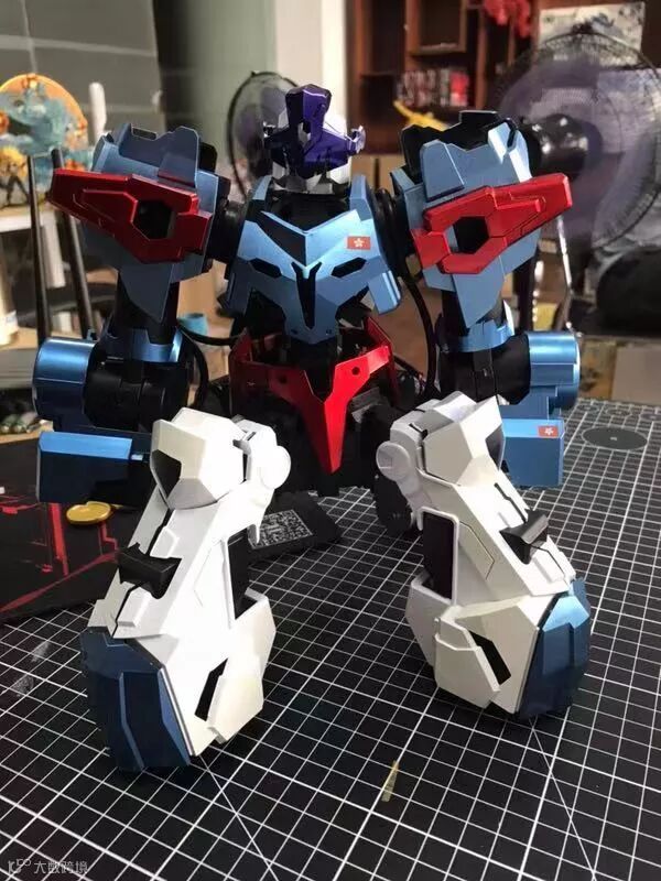 比赛的第一大亮点来了,比赛用的机甲虽然跟之前各区域的预选赛一样都是工匠社的GANKER EX但是我们为了总决赛特别制作了代表各个国家和地区的机甲