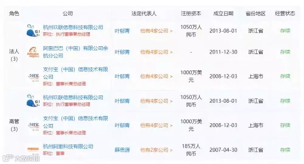 据天眼查显示,叶郁青目前身兼支付宝董事长和总经理,还担任杭州玖联信息科技有限公司法人,并于2018年6月新任阿里巴巴(中国)有限公司余杭分公司法人,身兼杭州阿里科技有限公司董事等职务。根据国家企业信用信息公示系统显示,目前支付宝(中国)网络技术有限公司的法定代表人依然是彭蕾。