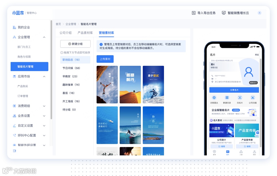 三、小蓝本智能名片营销素材库上线