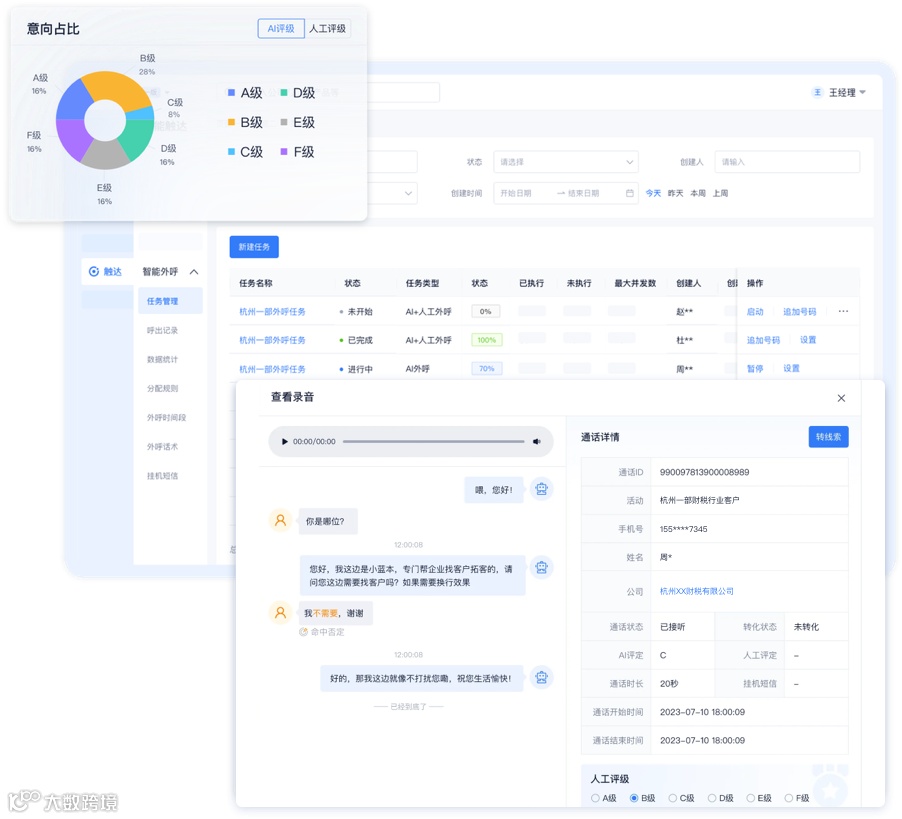 作为智能销售 SaaS 系统,小蓝本一站式全流程的智能销售解决方案,在智能触达模块,提供人工外呼、AI 外呼和智能人脉等功能,助力客户高效联系海量客户,快速筛选高意向客户,提升沟通效率。为长线发展,给客户提供更好的服务,近期小蓝本自建“AI智能外呼机器人”的语音合成系统,现已正式上线并持续稳定运行,助力企业业务提质增效。