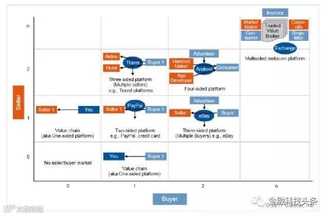 从信任的角度看公有部署还是私有部署问题是至关重要的。稍后将会解释不同的实施类型。随着区块链实施的发展,结构化部署将不仅仅跨单个实体和行业,还将会跨多个市场生态系统。这将极大的促进多边市场模型的建立(见图4)。