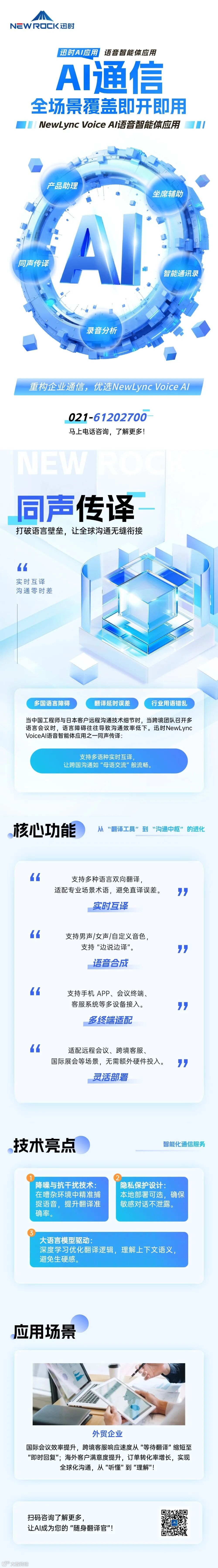 在数字化办公时代,企业通信早已超越“打电话”的基础需求,如何让沟通兼具智能与效率?迅时通信NewLync Voice AI推出的一系列语音智能体应用,以“全场景覆盖、即开即用”为核心,将AI技术深度融入企业通信链路,打造一站式解决方案。
